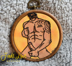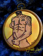 What a handful! This spicy multimedia art piece was hand-embroidered and hand-painted by Stephanie in her smoke and pet-free home studio, using only high quality materials. This item measures 4" round, and is set in a faux wood embroidery hoop, with a fastener at the top for hanging/display.