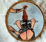 Get your safe word ready! This one of a kind, multimedia piece is full of fun details. This unique artwork incorporates hand-embroidery, hand-painting, inkwork, and 3-D elements.